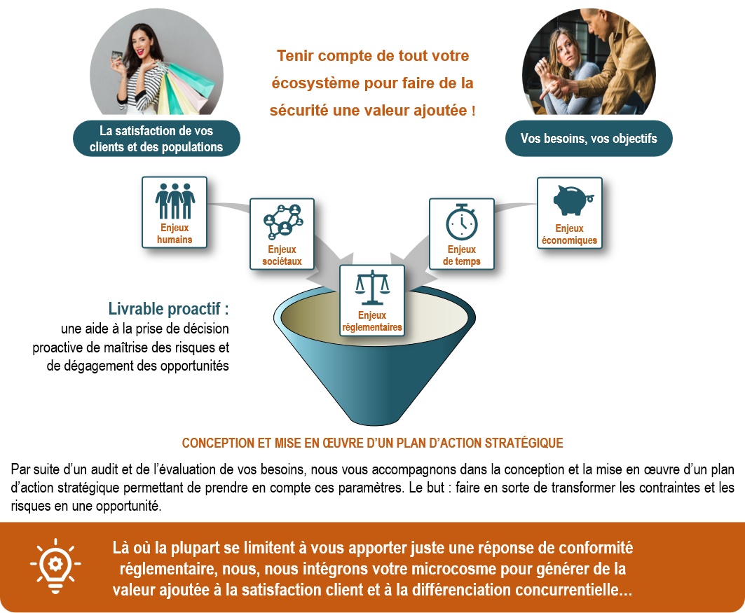 La doctrine des chargés de sécurité repose sur la croyance d’être des centres de coût et de la conformité réglementaire explicite, mais pas implicite. Notre expertise et raison d’être dans nos statuts constitue une offre de placement vous permettant de :
